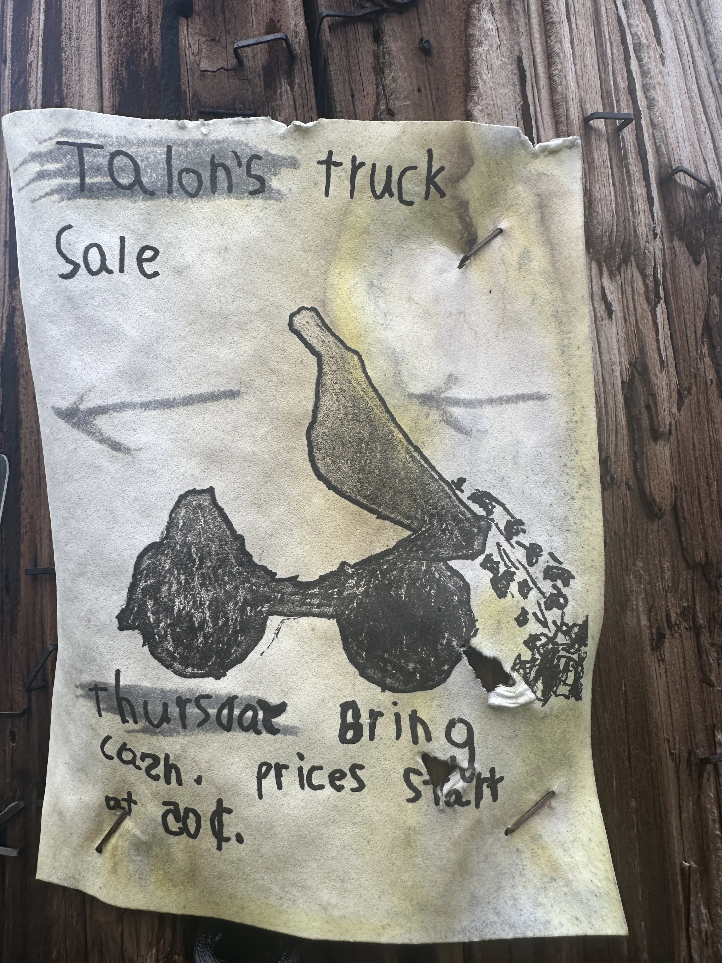 What I love about Talon’s Truck sale is that there’s no address, or time- and of course the instruction to BRING CASH.
