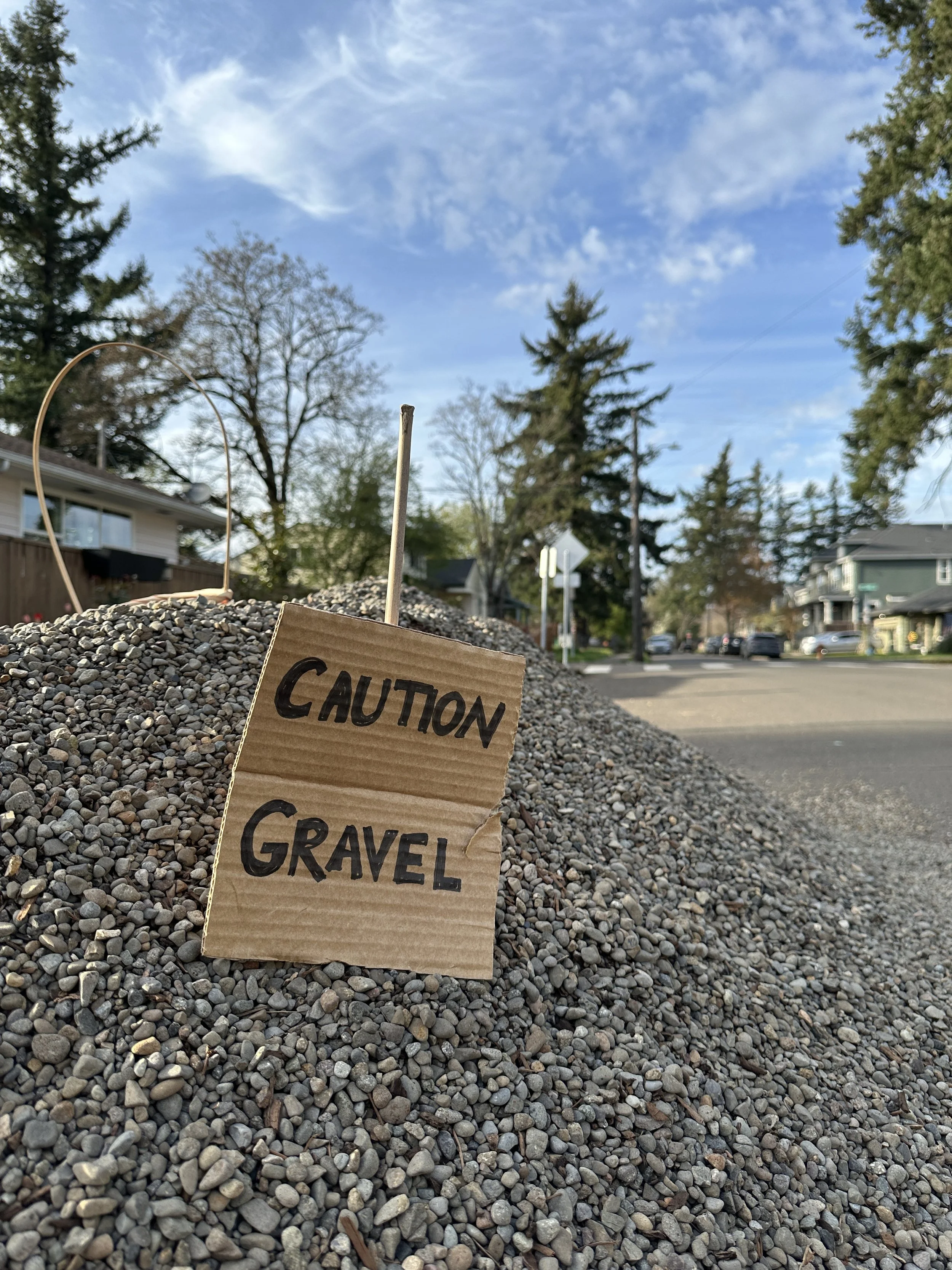 This made me laugh as I imagined how this pile of gravel could be dangerous. Maybe you might try to climb it and slip and fall?